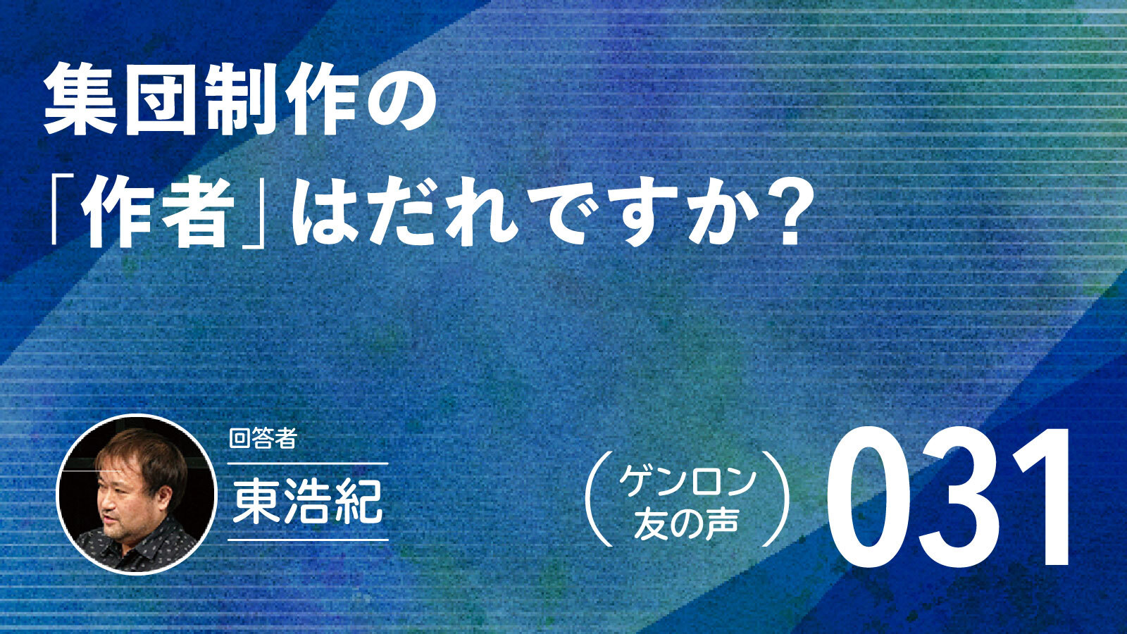 【 #ゲンロン友の声|031】集団制作の「作者」はだれですか?