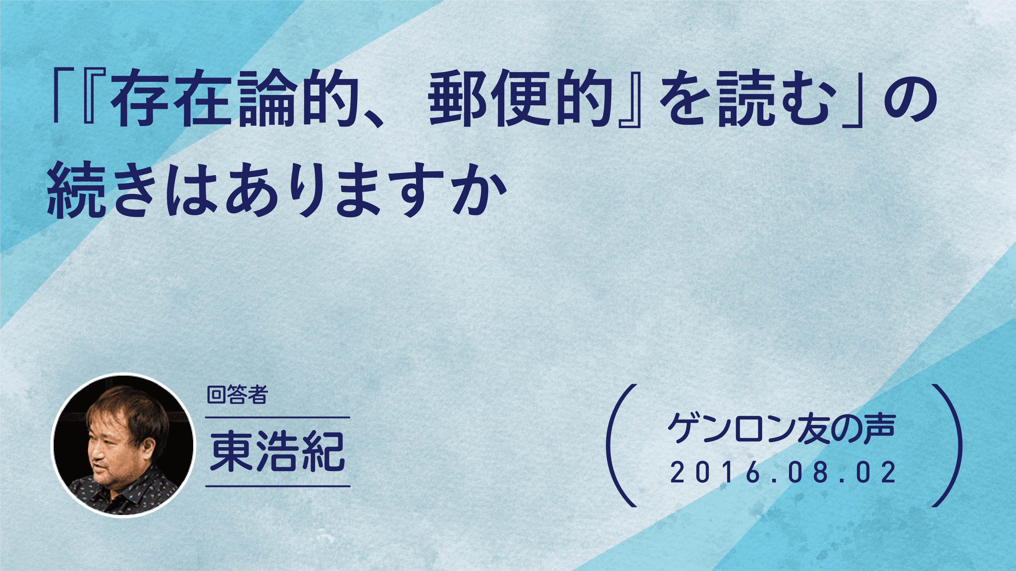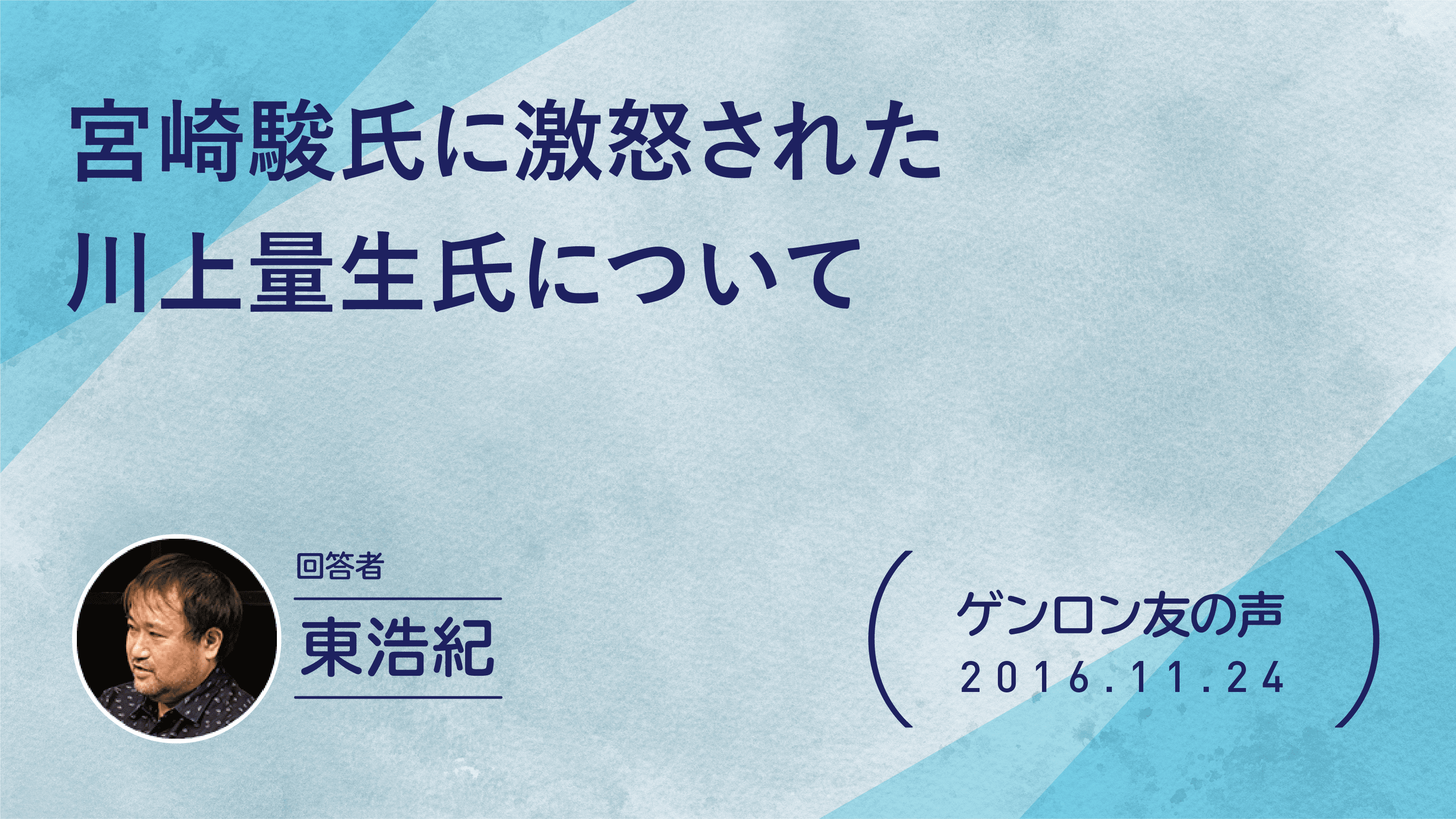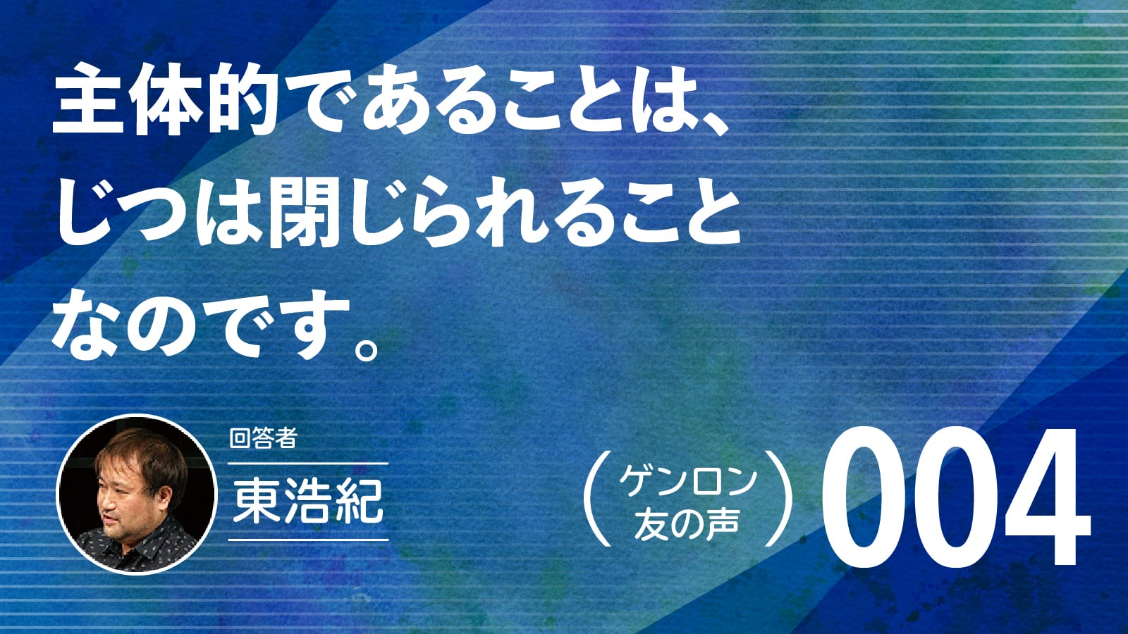 1971年東京生まれ。批評家・作家。東京大学大学院博士課程修了。博士(学術)。株式会社ゲンロン創業者。著書に『存在論的、郵便的』(第21回サントリー学芸賞)、『動物化するポストモダン』、『クォンタム・ファミリーズ』(第23回三島由紀夫賞)、『一般意志2.0』、『弱いつながり』(紀伊國屋じんぶん大賞2015)、『観光客の哲学』(第71回毎日出版文化賞)、『ゲンロン戦記』、『訂正可能性の哲学』など。