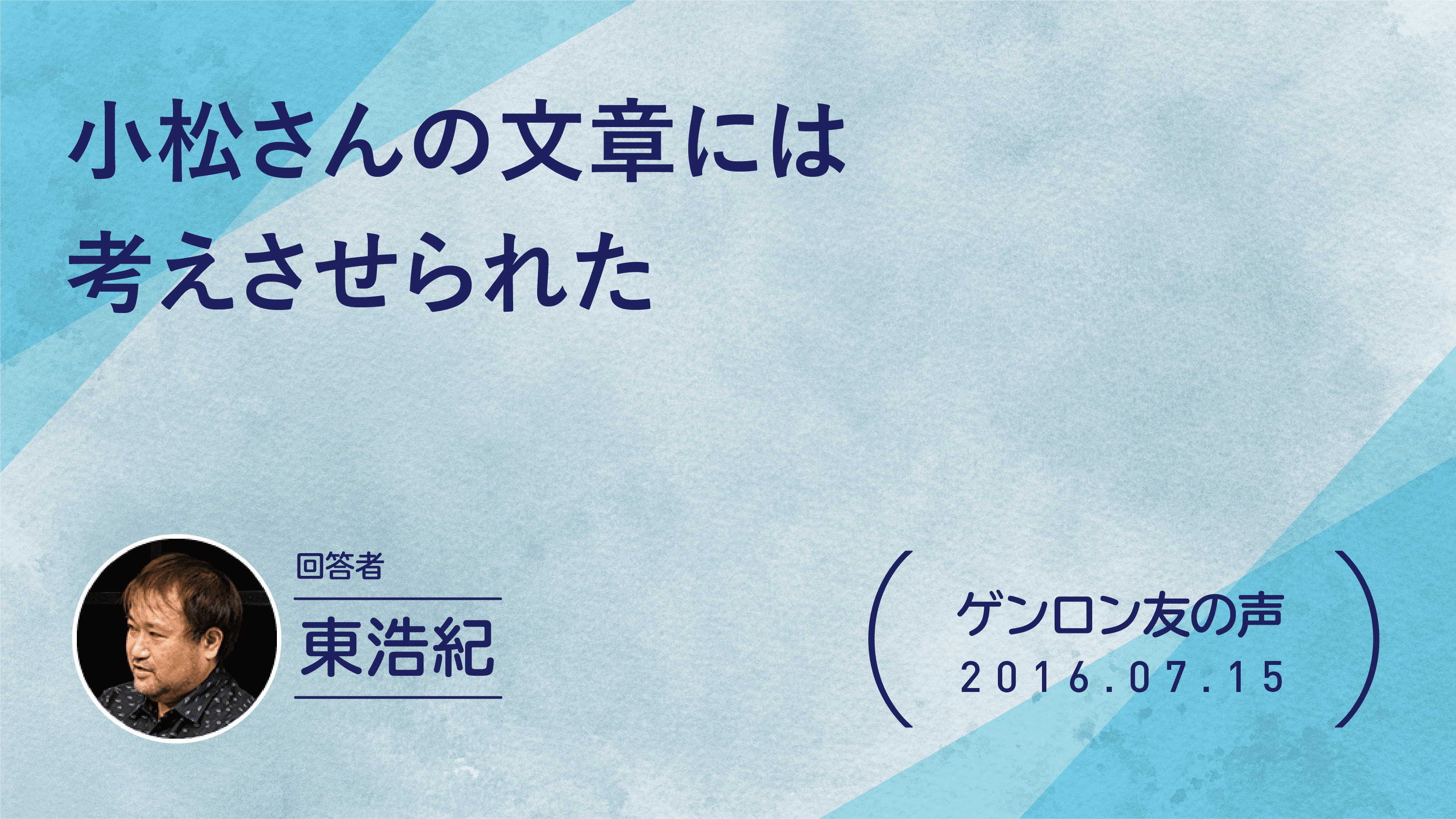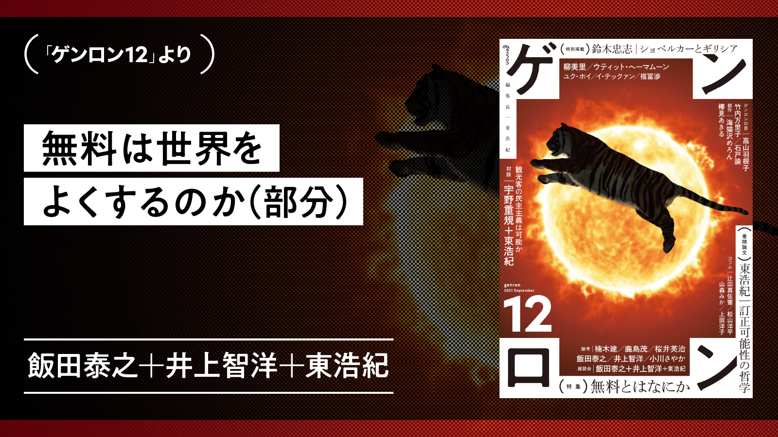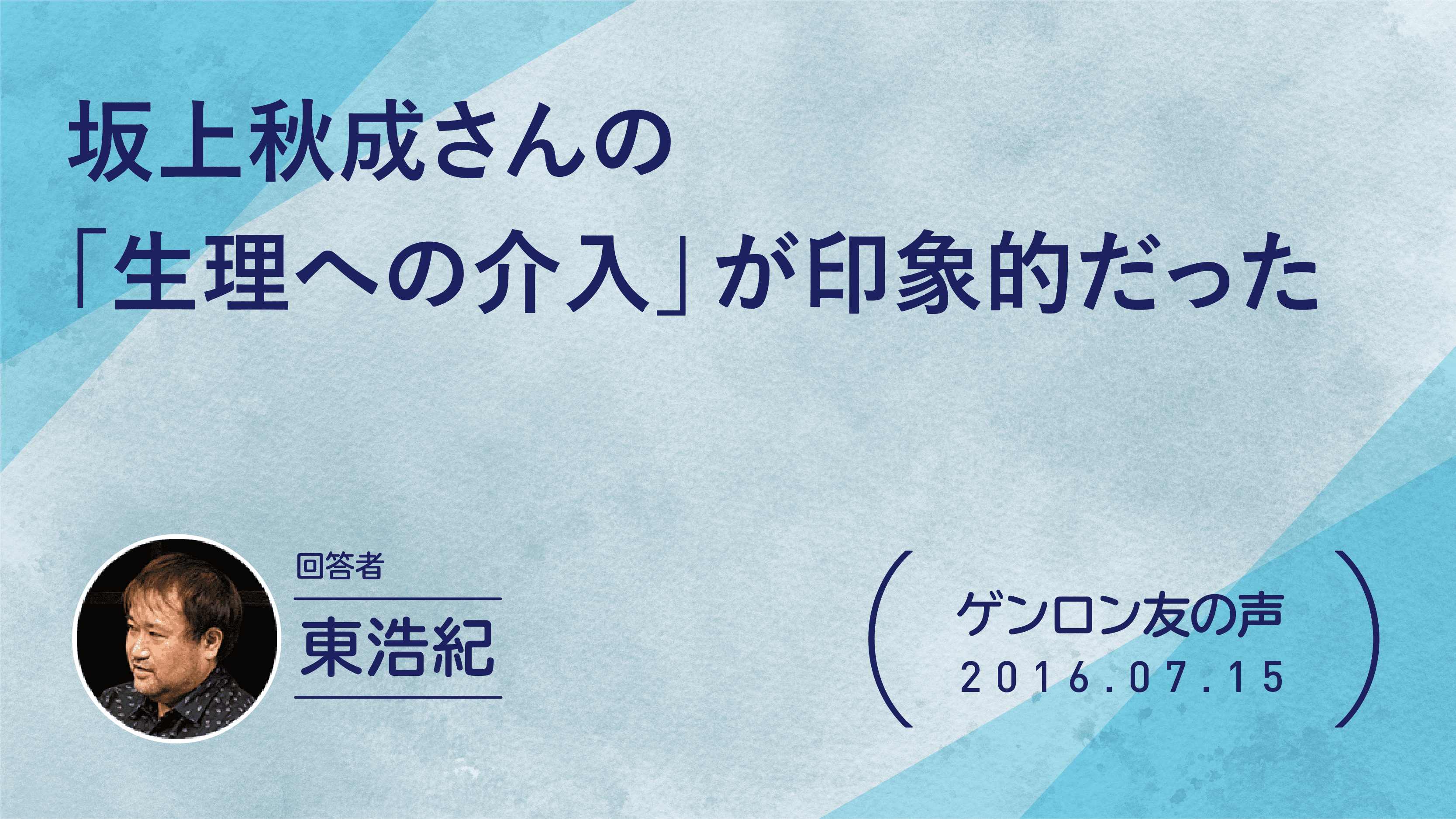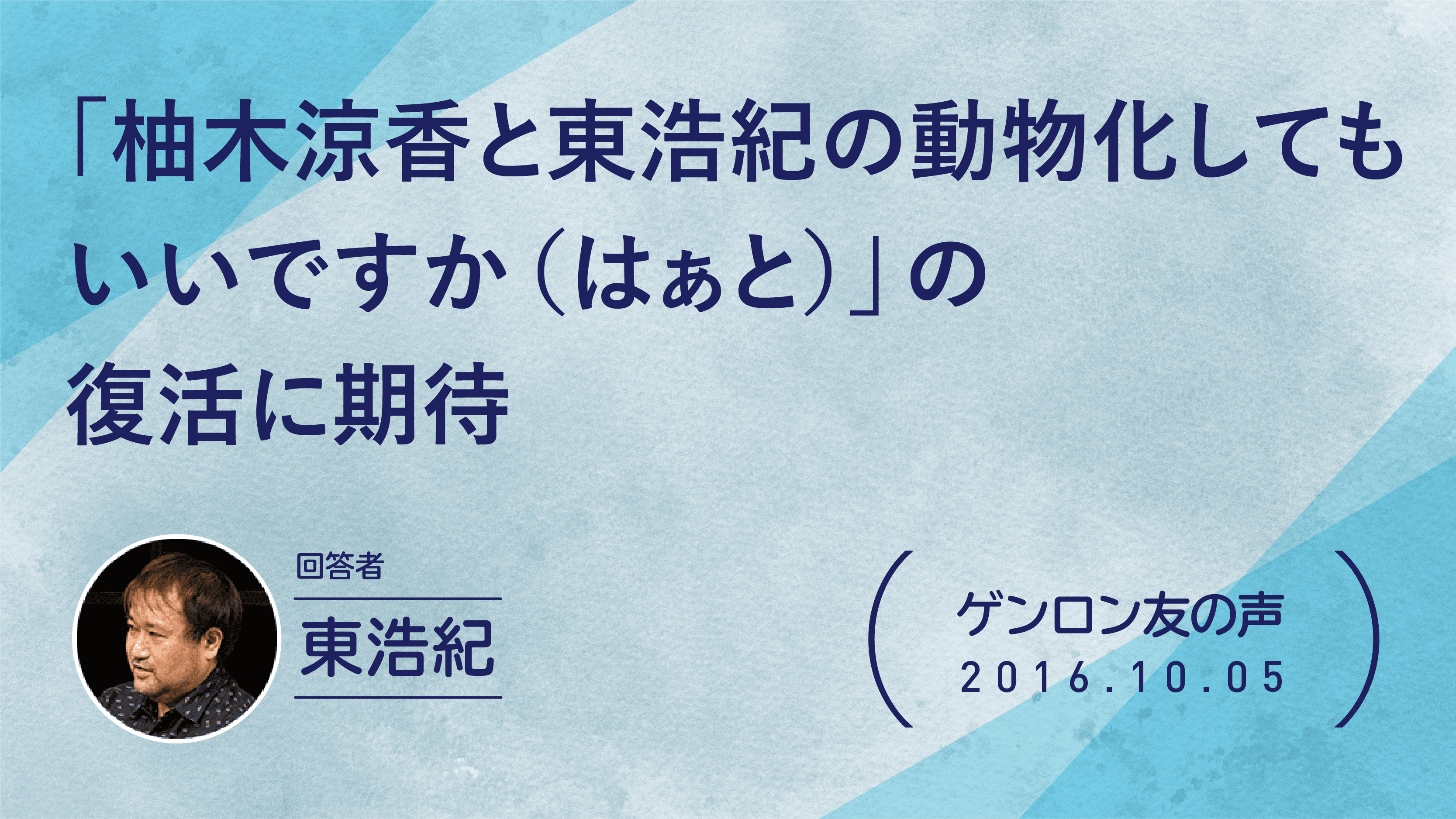 1971年東京生まれ。批評家・作家。東京大学大学院博士課程修了。博士(学術)。株式会社ゲンロン創業者。著書に『存在論的、郵便的』(第21回サントリー学芸賞)、『動物化するポストモダン』、『クォンタム・ファミリーズ』(第23回三島由紀夫賞)、『一般意志2.0』、『弱いつながり』(紀伊國屋じんぶん大賞2015)、『観光客の哲学』(第71回毎日出版文化賞)、『ゲンロン戦記』、『訂正可能性の哲学』など。