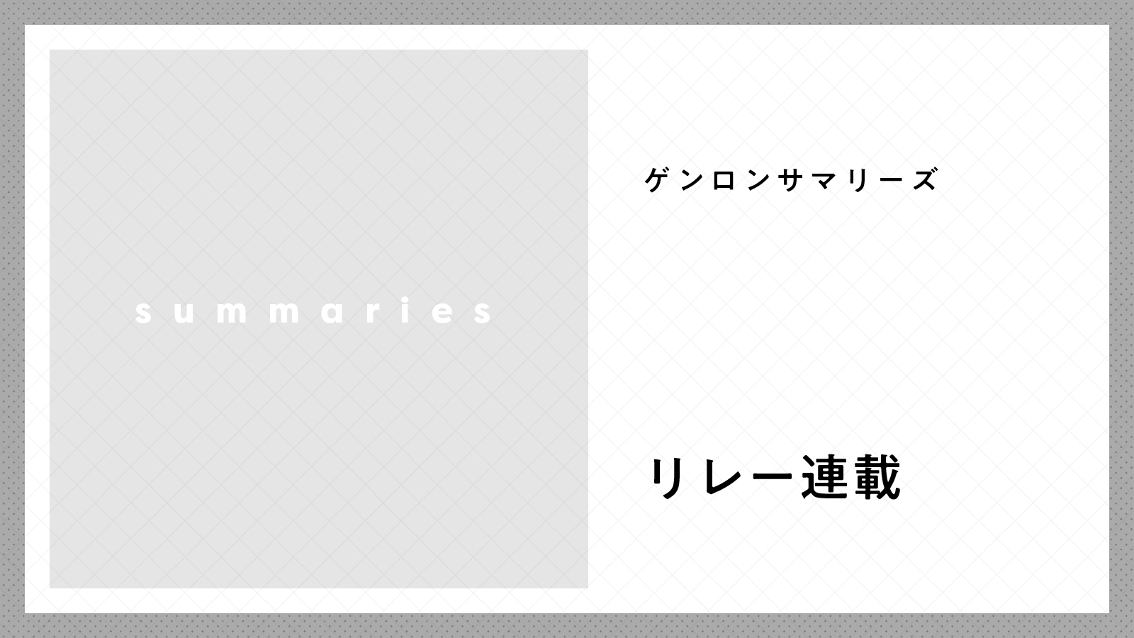 「ゲンロンサマリーズ」は、2012年5月から2013年6月にかけて配信された、東浩紀責任編集の新刊人文書の要約&レビューマガジンです。